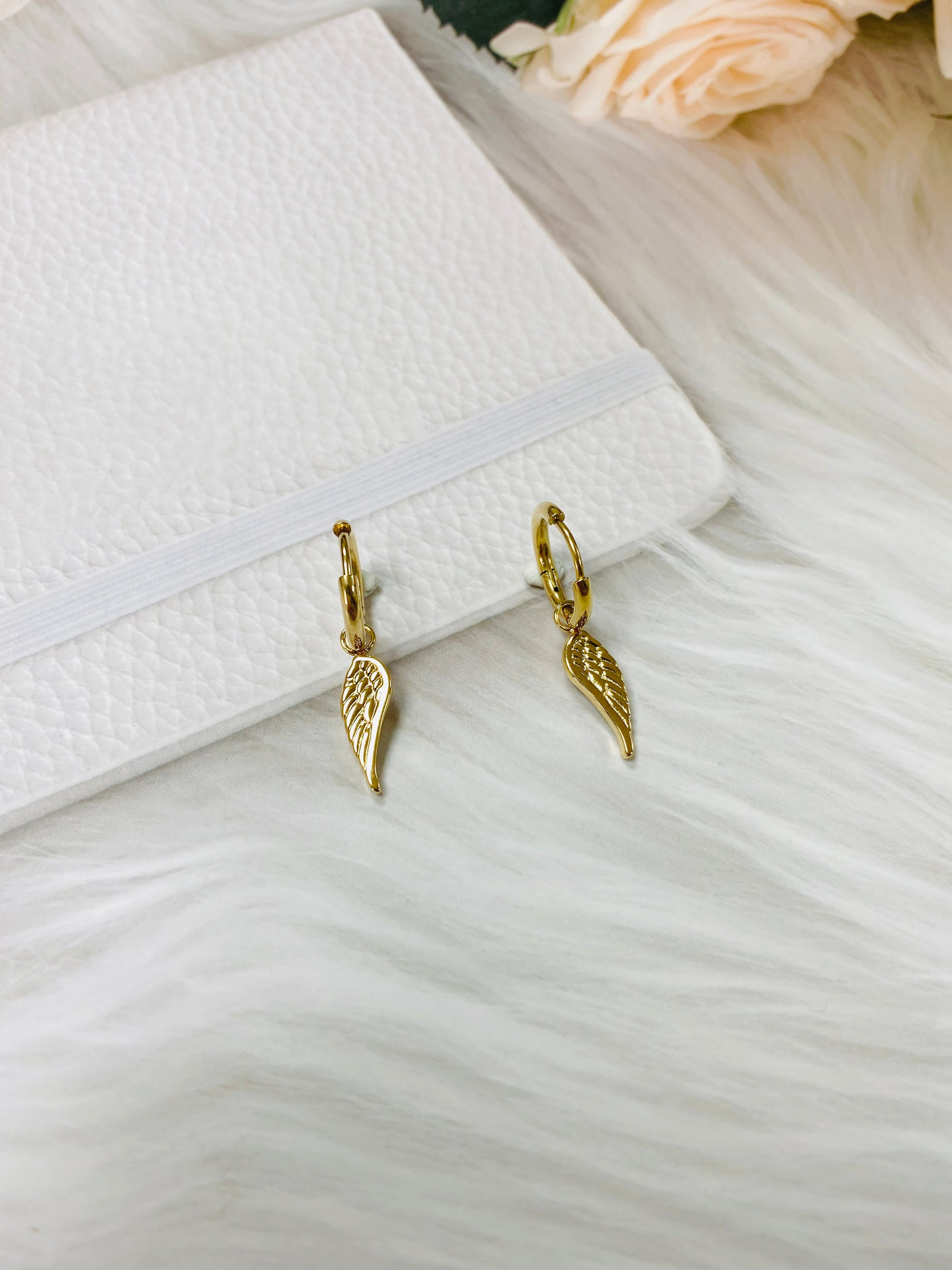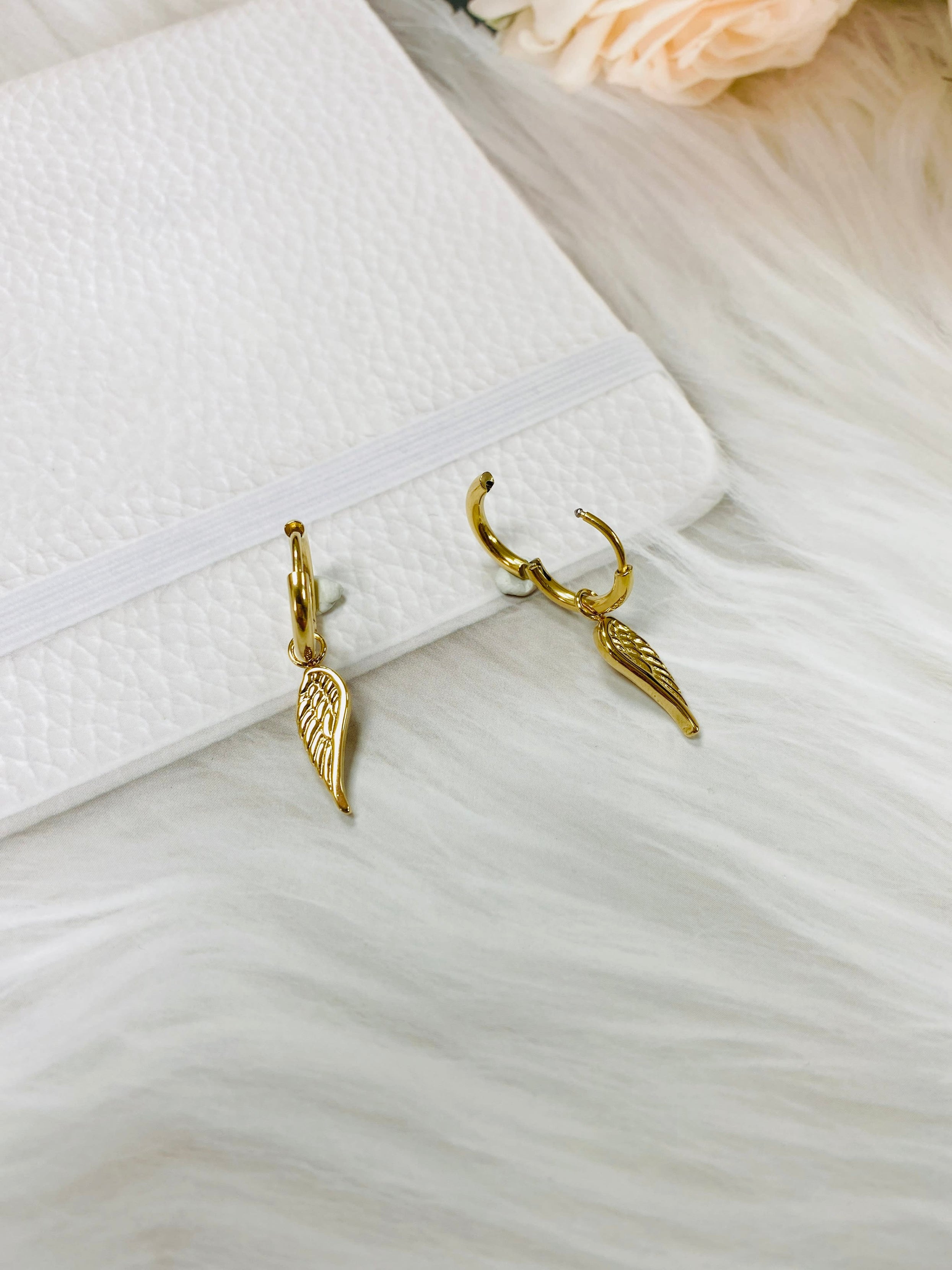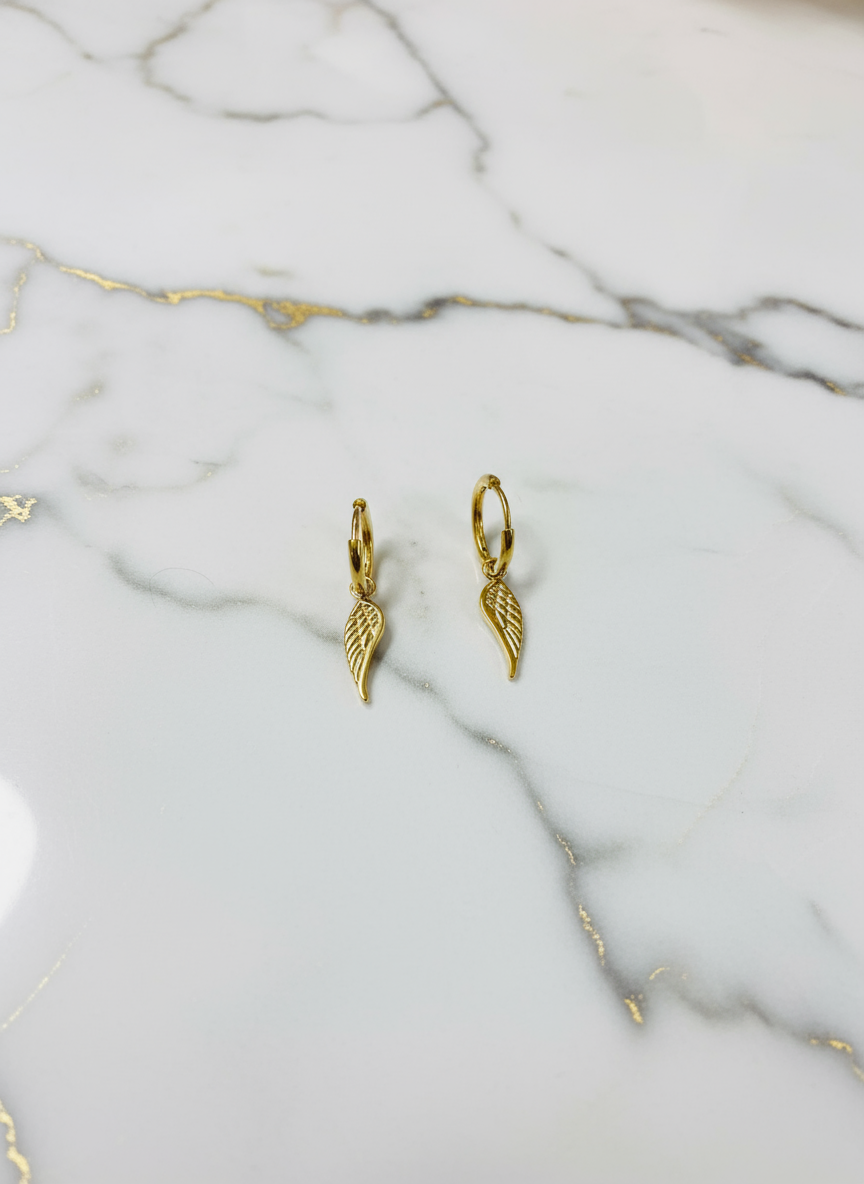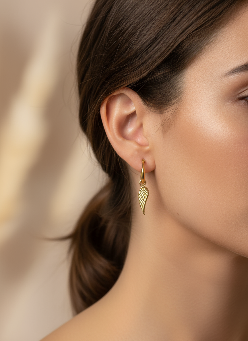 The Celeste Wing Hoop earrings bring a sleek gold huggie design with a finely detailed wing charm. Crafted from stainless steel, they’re waterproof and anti-tarnish for long-lasting shine. Lightweight construction makes them comfortable for all-day wear. A versatile piece that complements both casual and dressy outfits. Perfect for adding a subtle celestial touch to your everyday style.