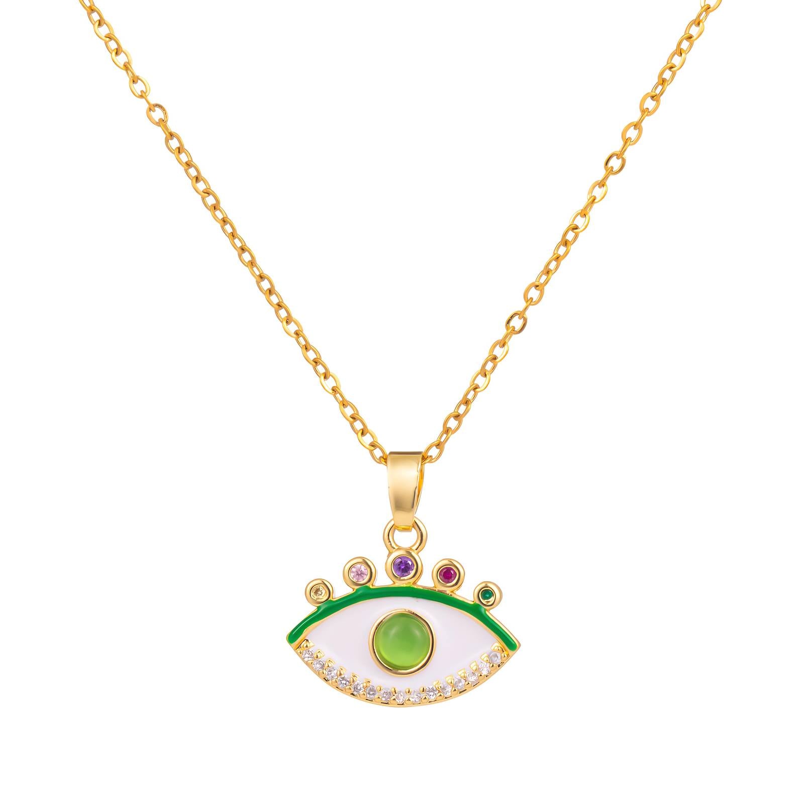 The Mystara Necklace showcases a vibrant evil eye pendant designed with a bold green centre stone. Multicoloured gems and pavé accents add a playful touch of sparkle. Crafted with a radiant gold finish for everyday elegance. A symbolic piece meant to bring protection and positive energy. Perfect for adding colour and charm to any outfit.