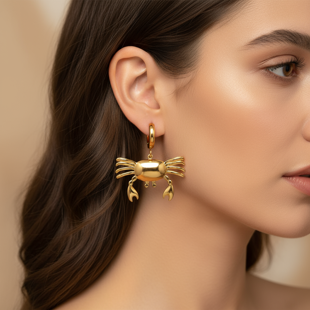 The Ocean Crab Hoops add a splash of coastal charm with their bold golden crab pendants. A symbol of resilience, intuition, and the ever-moving tides, they channel pure ocean energy. Lightweight hoops let the crabs sway playfully with each step. Perfect for ocean lovers, free spirits, and anyone drawn to the sea’s magic. A fun, stylish statement that brings seaside whimsy to any look.